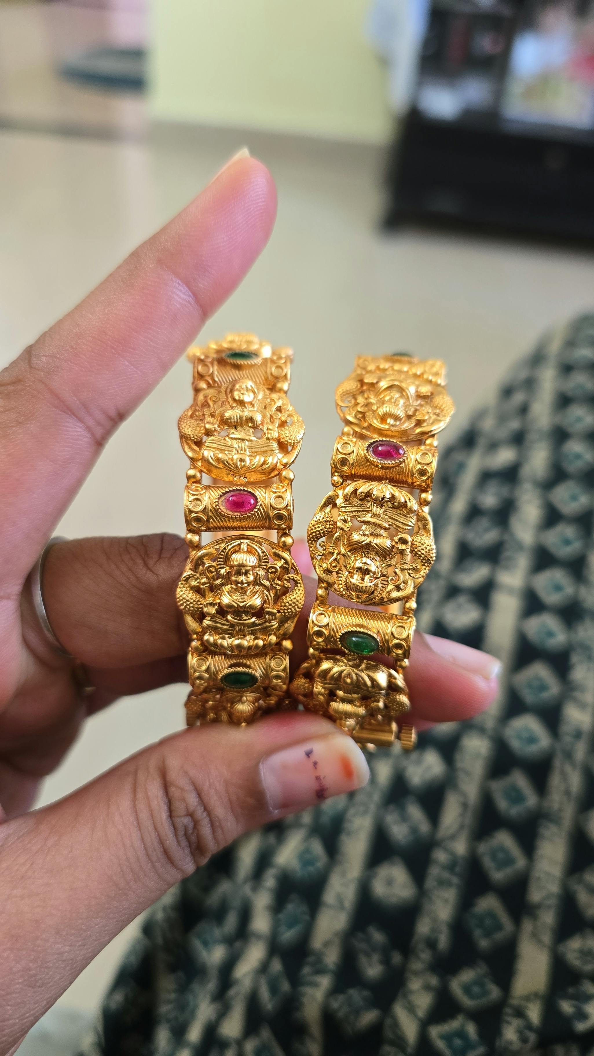 - Design: Temple-inspired engravings featuring Goddess Laxmi