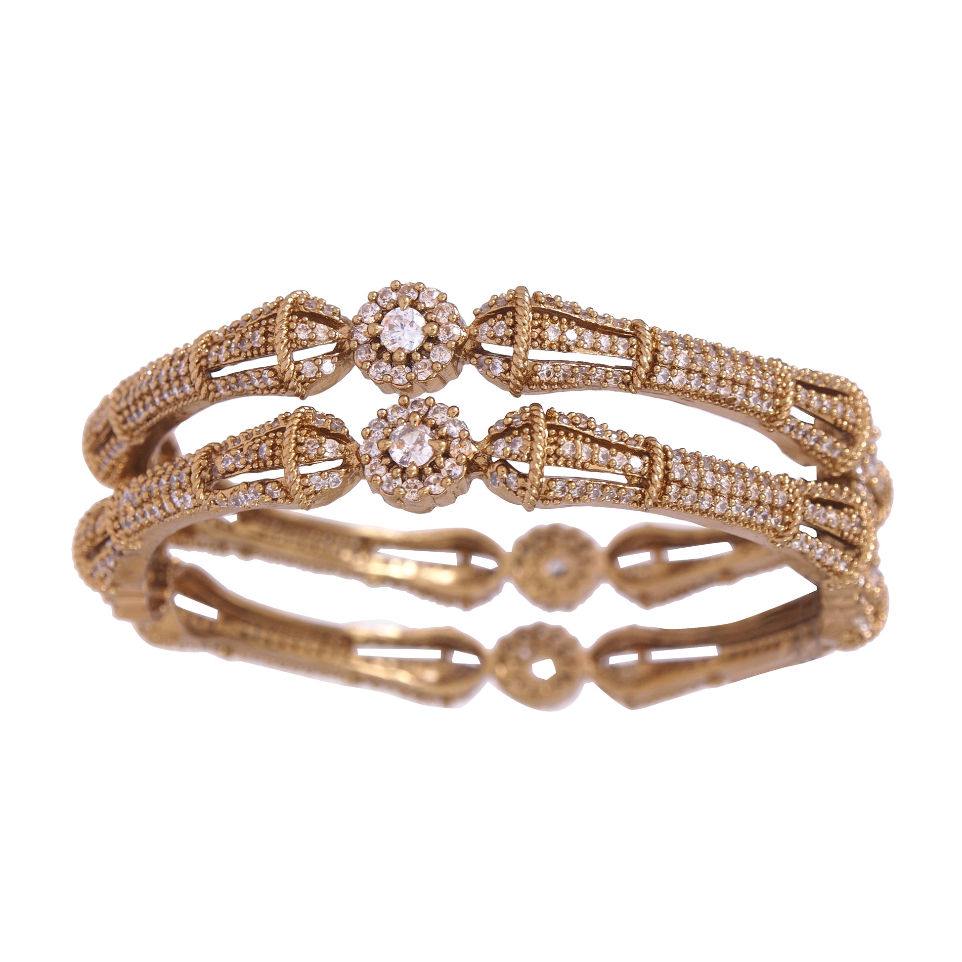 Elegant Temple Wear Micro Gold Plated Bangles Set with American Diamond Stones - Set of 4