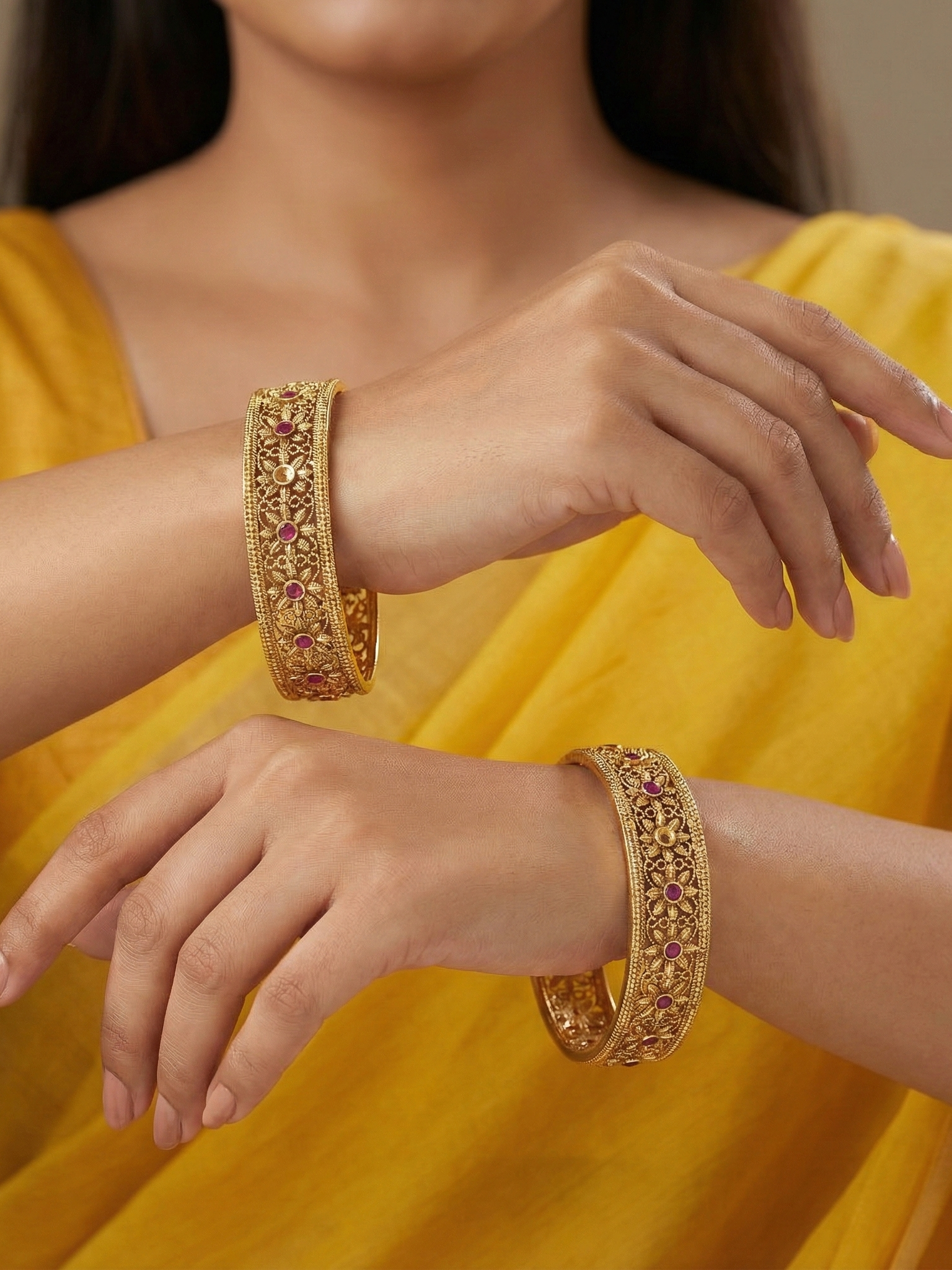 These bangles are ideal for your ethnic and festive looks.They pair beautifully with traditional sarees, anarkalis, lehengas, and ethnic dresses, making them suitable for religious ceremonies, weddings, parties, poojas, and festive occasions.
